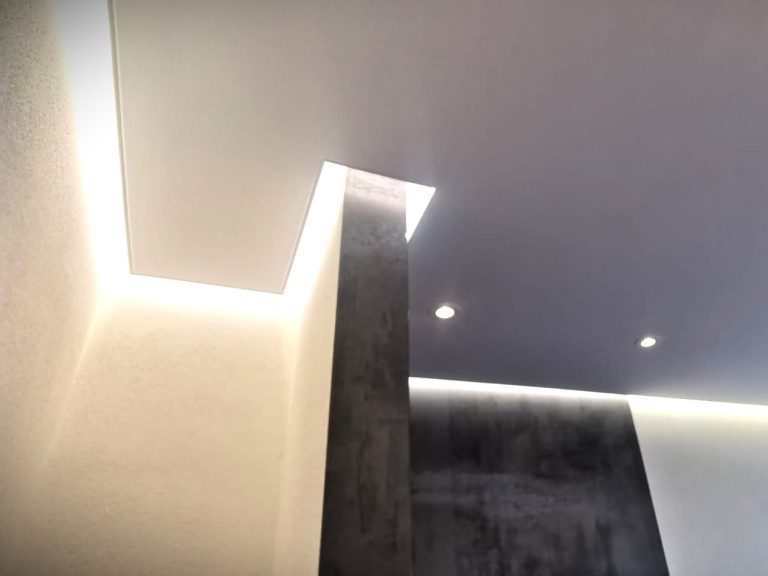 Durch die Verwendung von Lichtbändern oder LED-Streifen, die in der Spanndecke durch eine Fuge angebracht werden, wird somit eine indirekte Beleuchtung erzeugt.